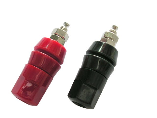 Základní typ plastového terminálu pro banánky, vidlice nebo odizolovaný vodič (max. průměr 2,4 mm). Cena za kus.