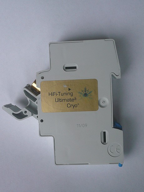 High-endová varianta svorkovnicového jističe včetně stříbrné keramické pojistky 10 x 38 mm Gold. Kryogenicky ošetřená.